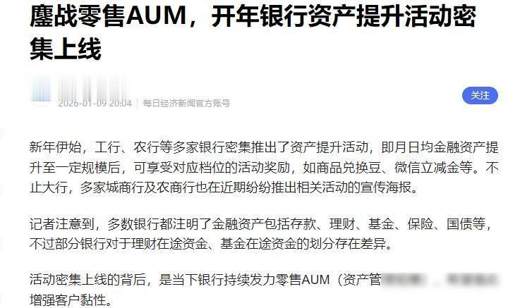 银行现在关注的重点不是放出去多少贷款,而是客户账户里存了多少钱,这个金额叫作AUM,也就是资产管理规模,哪家银行的客户资金多,哪家就能通过收取管理费、销售理财和保险产品来赚钱,所以银行会努力吸引大家存钱或购买各类产品,哪怕送些小家电也愿意,这么做不是为了帮客户改善生活,而是为了银行自己能够维持经营,有位客户经理提到,现在如果不积极提升AUM,连年终奖都很难拿到。
