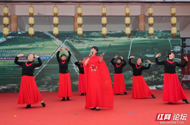 活动最后,所有演职人员、志愿者及部分居民走上舞台合影。快门按下的一刻,不远处是静静流淌的浏阳河。