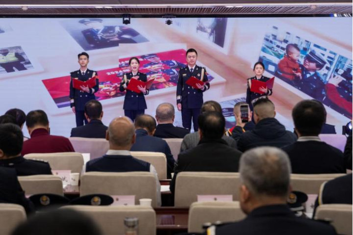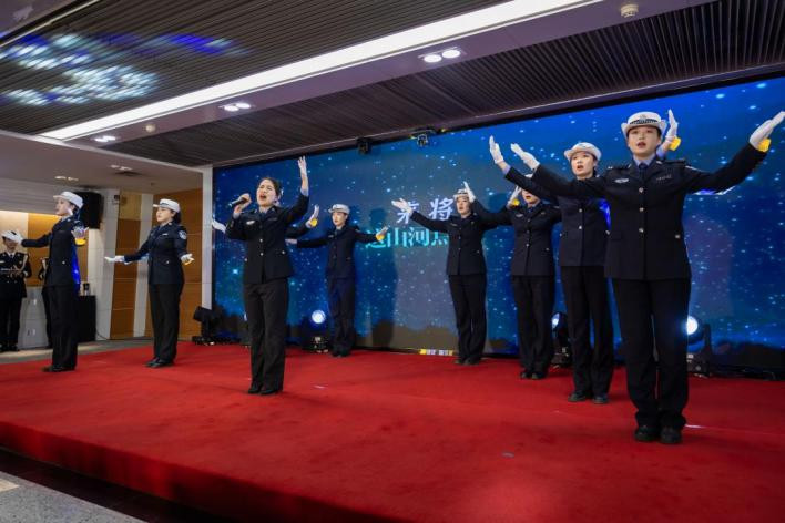 随着《凤凰花开的路口》《少年壮志不言愁》等经典旋律响起,全体人员放声高歌,将现场气氛推向高潮。仪式在《中国人民警察警歌》中缓缓落幕。
