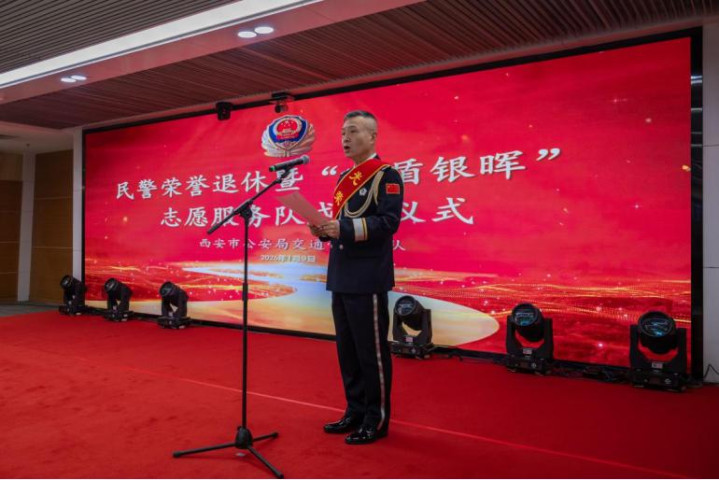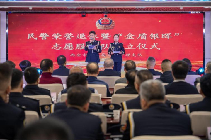阳光讯(记者郭璟霖)警徽闪耀薪火相传,一代代交通警察将青春岁月,献给城市的车水马龙与万家灯火,近日,西安市公安局交通管理支队举行民警荣退暨“金盾银晖”志愿服务队成立仪式。