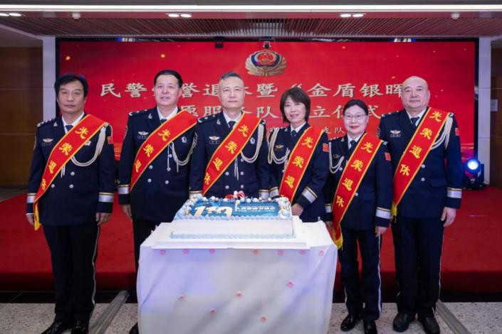 仪式最后,全体人员共同为2025年退休民警过了一场特别而温馨的集体生日。