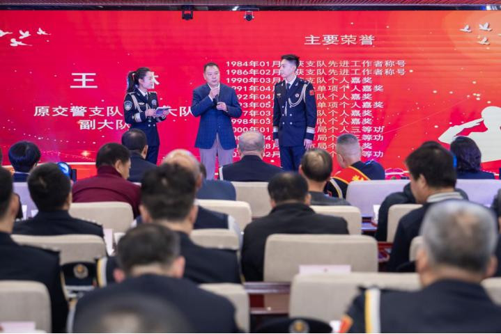西安市公安局交通管理支队党委书记、支队长宋伟刚出席仪式并致辞。市公安局离退处处长杨精国、队建处副处长王育华及支队党委全体成员与100余名退休民警、英模代表各大队负责同志及民警代表齐聚一堂,共同见证这一庄严而温暖的时刻。