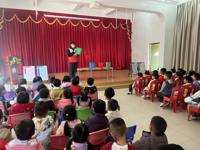 为了积极响应城市生活垃圾分类的号召,将环保的种子撒播在幼儿心中,1月13日,广州市南沙区黄阁镇城管办在黄阁镇麒麟大地幼儿园举办了一场以“小手拉大手,分类‘童’步走”为主题的垃圾分类宣传活动,现场70余名师生代表参与活动。