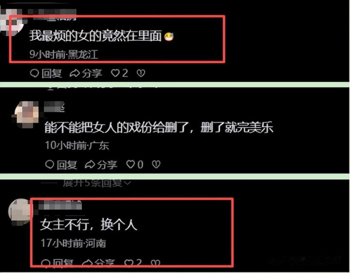 网友吐槽道:“能不能把她的戏份给删了,删了就完美了。”