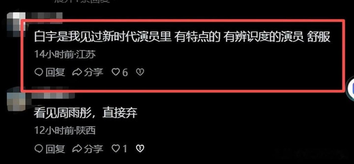 网友评价道:“白宇是我见过新时代演员力,有特点、有辨识度的演员,看着舒服。”