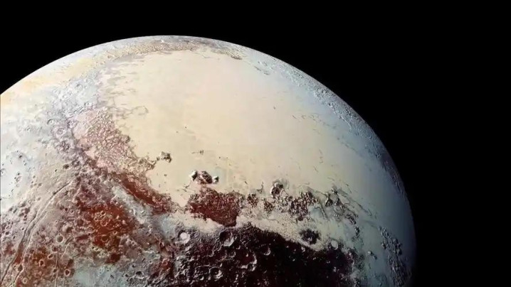 这心形区域面积有2300万平方公里,西边那叶“心瓣”叫斯普特尼克平原,表面反射率高达90%,几乎没陨石坑,是太阳系最年轻的地表之一。