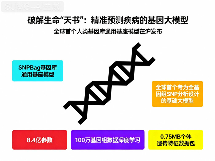 人类的基因组,如同一本由30亿个碱基对编织而成的宏大“天书”。在这本“书”里,绝大部分文字在全人类中是通用的,唯有那些被称为SNP(单核苷酸多态性)的微小差异,悄悄决定了每个人的身高、智力、性格,甚至是患病风险。昨天下午,在徐汇滨江的模速空间,全球首个专为全基因组规模SNP分析设计的基础大模型——SNPBag正式发布。这意味着,人类在破解遗传密码的征途中,告别了效率低下的传统计算模式,大步跨入大模型时代。