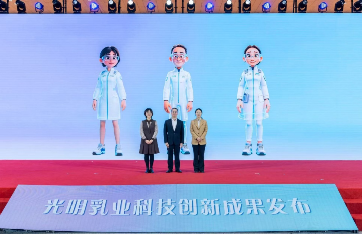 产品创新的背后,离不开光明乳业深厚的科研积淀。发布会现场,光明乳业研究院的科研专家天团携自己的AI数字人亮相,通过一场跨越虚拟与现实的创新互动,逐一揭晓了光明乳业在自有知识产权菌株转化应用、高端发酵乳、功能性牛乳三大领域的创新成果。