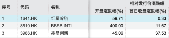 另外两家公司的首日涨幅分别为0.33%和11.67%,港股市场自去年12月23日以来上市的19只新股中,目前无一例破发。