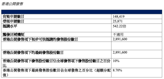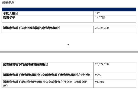 在公开发售环节其超额认购倍数仅为542.22倍,但在国际发售环节的认购倍数则达到了18.52倍。