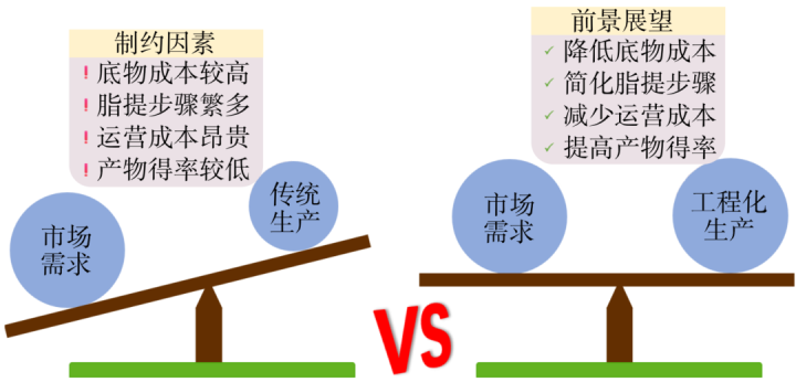 图3传统和工程微生物脂类生产的比较