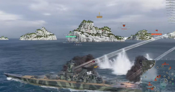 在火力方面,它搭载了和鲸同款的9门460mm主炮,30秒装填时间、31/31齐射角以及26.6KM射程,基本就是照搬鲸的主炮配置。唯一区别在于散布和炮塔转速:鲲的sigma值被削弱到1.8,比鲸的2.1散不少,容易让人血压升高。此外,72秒的转炮速度,比鲸的60秒还要僵硬。