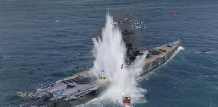 不过在机动性上,鲲也有着与鲸类似的缺点。它的航速只有27节,2.04的推重比使得它的行进无比缓慢。900m的回转半径还算能接受,18.76s的转舵虽然比鲸略快,也依旧不够用,属于9级战列舰中垫底的那档。另外14.1KM的水隐和10.3KM的空隐很容易被点亮。防空更是形同虚设,连8级航母都能轻松搞他。