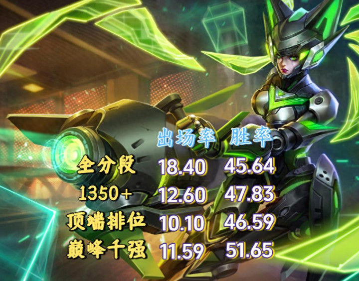 在顶端局之下,你会发现胜率表现就很差,尤其是全分段,高达18.4%的登场率,但胜率只有可怜的45%多一些,是什么原因导致了这一局面呢?