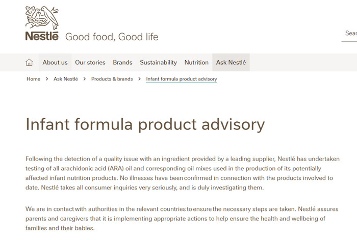 虽然雀巢集团在声明中表示,已对可能受影响的产品进行了花生四烯酸(ARA)油脂及相关油脂混合物检测,尚未接到因食用该配方奶粉导致不适或患病的报告。但市场已经开始对雀巢的品控产生质疑了。